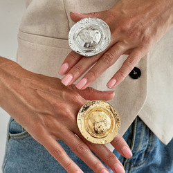 Yaratıcı benzersiz geniş şapka tasarım yüzük kadınlar için abartılı kişilik düzensiz geometrik alaşım ayarlanabilir halka