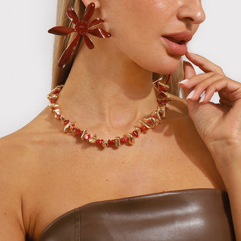Yeni tasarım anlamda düzensiz emaye çiçek küpe moda kişilik renkli küçük pirinç boncuk kolye kadınlar için