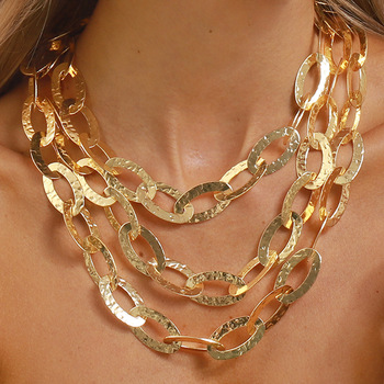 Kadın Minimalist tarzı geometrik Metal katmanlı kollarbone zincir küba tasarım çok katmanlı Metal zincir kolye