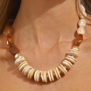 Vintage etnik tarzı el yapımı boncuklu kolye sonbahar kış kadınlar için yeni düzensiz renkli reçine kazak zinciri