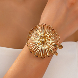 Übertriebene mehr schicht ige hohle Blütenblatt armband für Frauen Persönlichkeit Cuban Alloy Flower Open Bracelet Jewelry