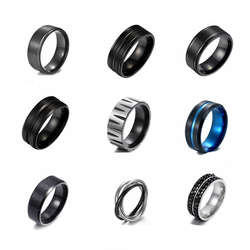 Anillo de acero inoxidable estilo Hip Hop Punk para hombre, sortija clásica con combinación negra, joyería