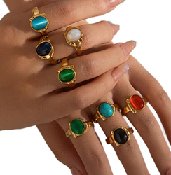 Anillo de Piedra Natural Multicolor Elegante Vintage al por Mayor, Anillo Ajustable de Acero Inoxidable de Estilo Minimalista, Accesorios para Mujer