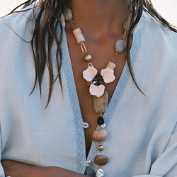 Collar largo con borla de piedra irregular en forma de Y de diseño personalizado collar de acrílico con flor esmaltada de estilo étnico Retro