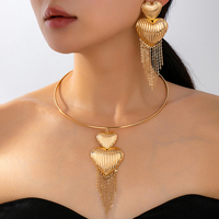Hot Selling Overdreven Hart Hanger Ketting Nieuwe Stijl Persoonlijkheid Lange Kwast Oorbellen Ketting Set Groothandel Voor Vrouwen