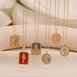 2025 नई बूंद-तेल ज्यामितीय टैट पेलेंट कोलेरबोन चेन रेट्रो रंगीन नमेल मछली के आकार के डिजाइन हार
