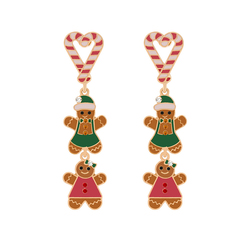 Women Alloy Rhinestone Heart Crutch Gingerbread Man Earrings Colorful Enamel Christmas Pendant Earrings