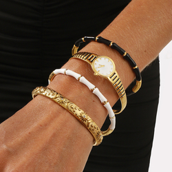 Women's Design Embossed Star and Moon Pattern Open Adjustable Bracelet Elegant Stainless Steel Bamboo Joint Watch Shape Bracelet