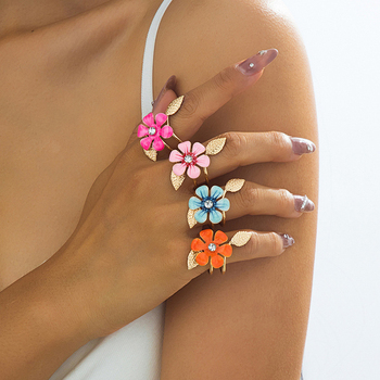 New Summer Multi-color Petal Open Ring Fashion Wholesale Colorful Enamel Flower Ring for Women