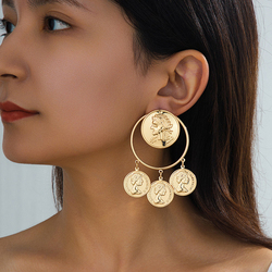 2025新しいヴィンテージフレンチポートレートタッセルイヤリング女性用金メッキ合金フープドロップ流行のクラシック結婚式卸売