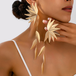 流行の新しい3次元金属製フラワーイヤリング大げさな個性大きな葉のイヤリング女性