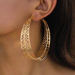 毎日通勤ジオメトリックイヤリング女性卸売人格キューバ中空パターンフープイヤリングジュエリー